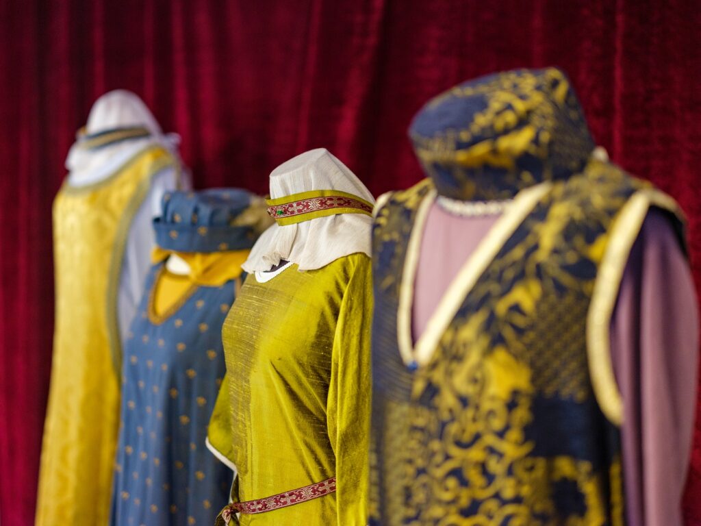Im Nibelungenlied zeigt sich höfische Pracht durch detailverliebte Beschreibungen von Kleidung und Rüstung. Fachleute kritisierten, dass die Spannung unter den unzähligen sogenannten „Schneiderstrophen“ enorm leiden würde. Für andere sind sie eine unerschöpfliche Quelle höfischer Hochkultur. Staunend hört man von exotischen Stoffen, glitzernden Edelsteinen und Fäden aus rotem Gold. Großzügige Kleidergaben pflegen gegenseitige Gunst in adeligen Kreisen, während ein kostbar bestickter Gürtel aus Seide und ein gesticktes Kreuz Siegfrieds frühen Tod besiegeln.